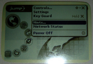 It's a good thing that hints appear automatically after the setup is complete. The hints provide "just in time" answers, and popping them up automatically ensures that users will know they exist. Still, I imagine that many users never return to view them again. They're only accessible via the pop-up menu on the "Jump" screen. And while the Jump screen is essential in the daily use of the device, the pop-up menu is completely invisible until summoned and the items it contains are rarely used.